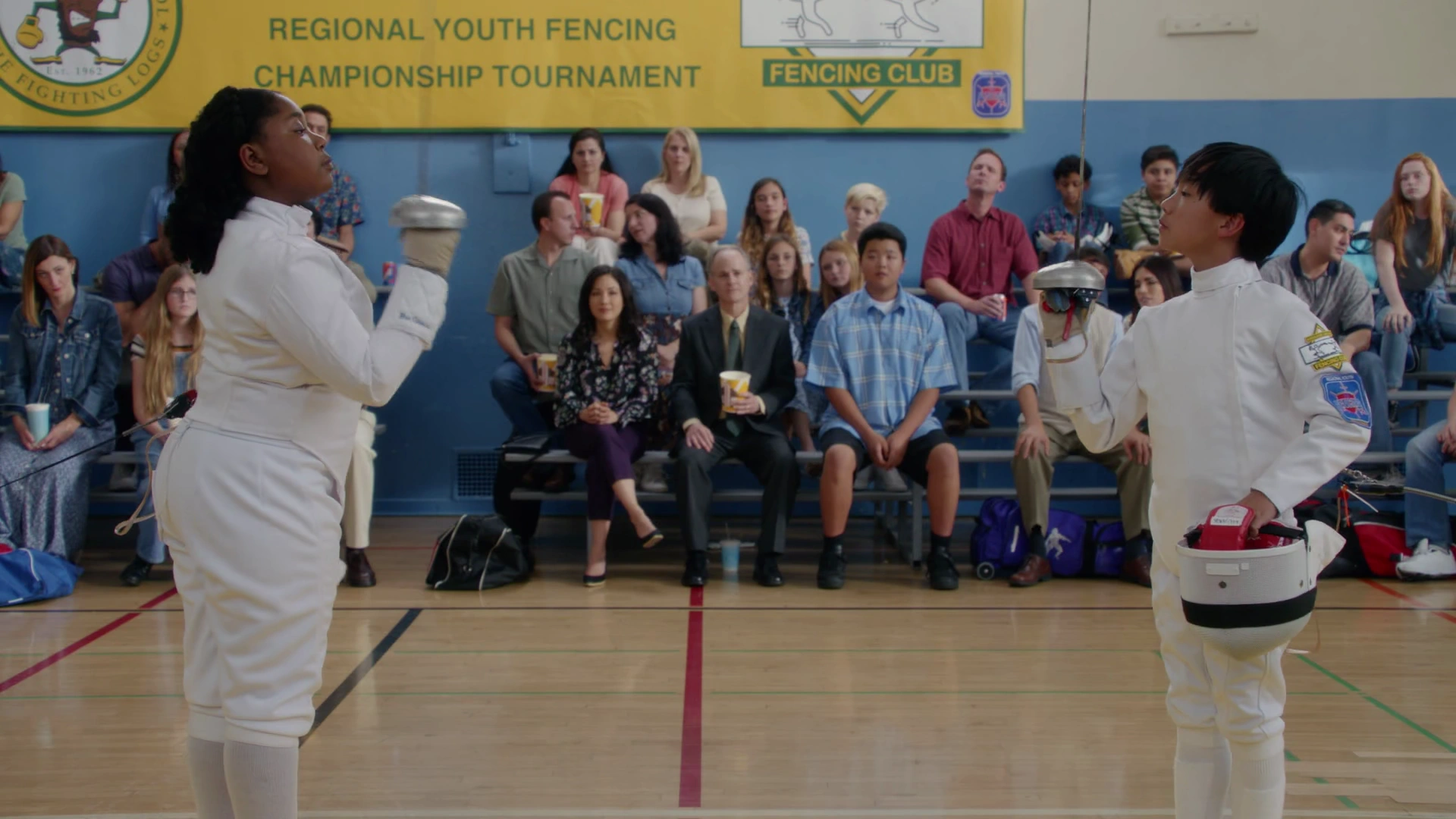 Evan: I got myself suspended from fencing on purpose so I wouldn't have to fight today's match. I knew exactly what I was doing with that flatulence emulator. Jessica: What? W-W-Why would you do that? Evan: She's why. Jessica: You don't want to fight a girl? Evan: No, I don't want you to see me lose. I can't beat Carla. She'll ruin my perfect record, and I can't not be perfect! Sorry, Mom... about the double negative. Eddie: Whoa! I'm not the bad influence on Evan. Jessica: Evan, you come out here right now and fight this girl! Eddie: Mom, I don't think this is how a principal is supposed to behave. Jessica: Shadow principal! Eddie: A shadow principal who puts too much pressure on her son and now he's terrified to lose. Jessica: I only want him to be the absolute best at everything he does all the time. Is that so wrong? Eddie: Yes! Evan needs to learn to chill, or he won't be able to roll with the punches when things don't go perfect for him. Jessica: "Chilling" is just giving yourself permission to fail. That might be your technique, but it's not mine. Eddie: Well, your method just sent Evan running into the boys' locker room. He hates that place. He usually changes in the car. Jessica: I need to go talk to him. Eddie: Well, this is the boys' locker room, and you're not a boy. Jessica: Or am I? Eddie: What are you doing? Jessica: I'm cutting off my beautiful hair so I can pass for a boy. |