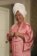 After that, Jessica tries to talk to Louis and discuss the stuff that she plans to do while Oscar is in town. She's doing this in order to find out if Louis is really jealous and won't tell her. But Louis didn't seemed to mind, even when Jessica admitted she wanted to wear a bathing suit while they go jacuzzi shopping. She gets upset by this since he wants Louis to be jealous so he can show some care if another person gets attracted. But before they can continue their conversation, Oscar finally arrives! He gifts the Huangs with a croquembouche, some wood chimes for Eddie, and a pan flute for Emery. He explains to the family that he is here to audition for Aladdin on Ice and is excited to be given a chance. After he goes to the bathroom, Louis points out to Jessica that Oscar is gay. However, Jessica doesn't believe him since they dated for a full summer and they kissed on the forehead. But Louis claims in the past, she has never been able to identify anyone who was gay. This unfortunately lead to the two of them to start arguing. Jessica was still defending Oscar claiming he is an athlete and is a straight man, but Louis tells her he is a dancer who's auditioning for Aladdin on Ice, and the closest he got to being an athlete was being a cheerleading coach. Then Oscar comes in asking to borrow a robe, and that's when Jessica finally picked up the clues and even saw Oscar's "Gaysian" necklace.