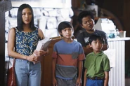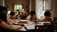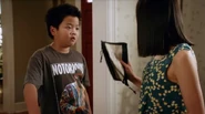 At Evan and Emery's elementary school, Principal Thomas is explaining to them what the meaning behind the stickers are, but Jessica has no clue what she's talking about. She calls her crazy in Mandarin and Emery tells her that she just said that she was a good teacher. Principal Thomas thanks her by stereotypically putting her hands together and bowing for her.