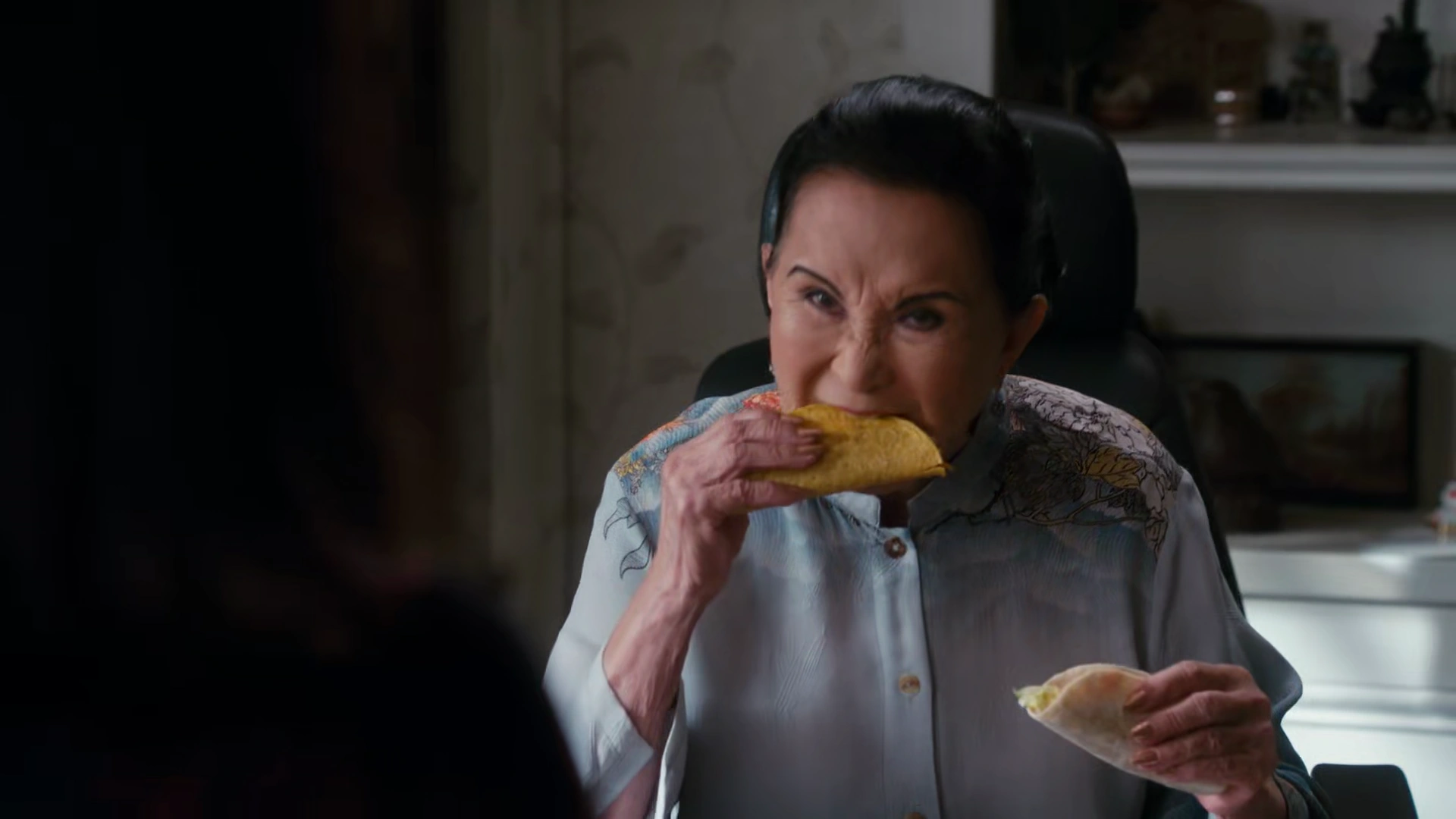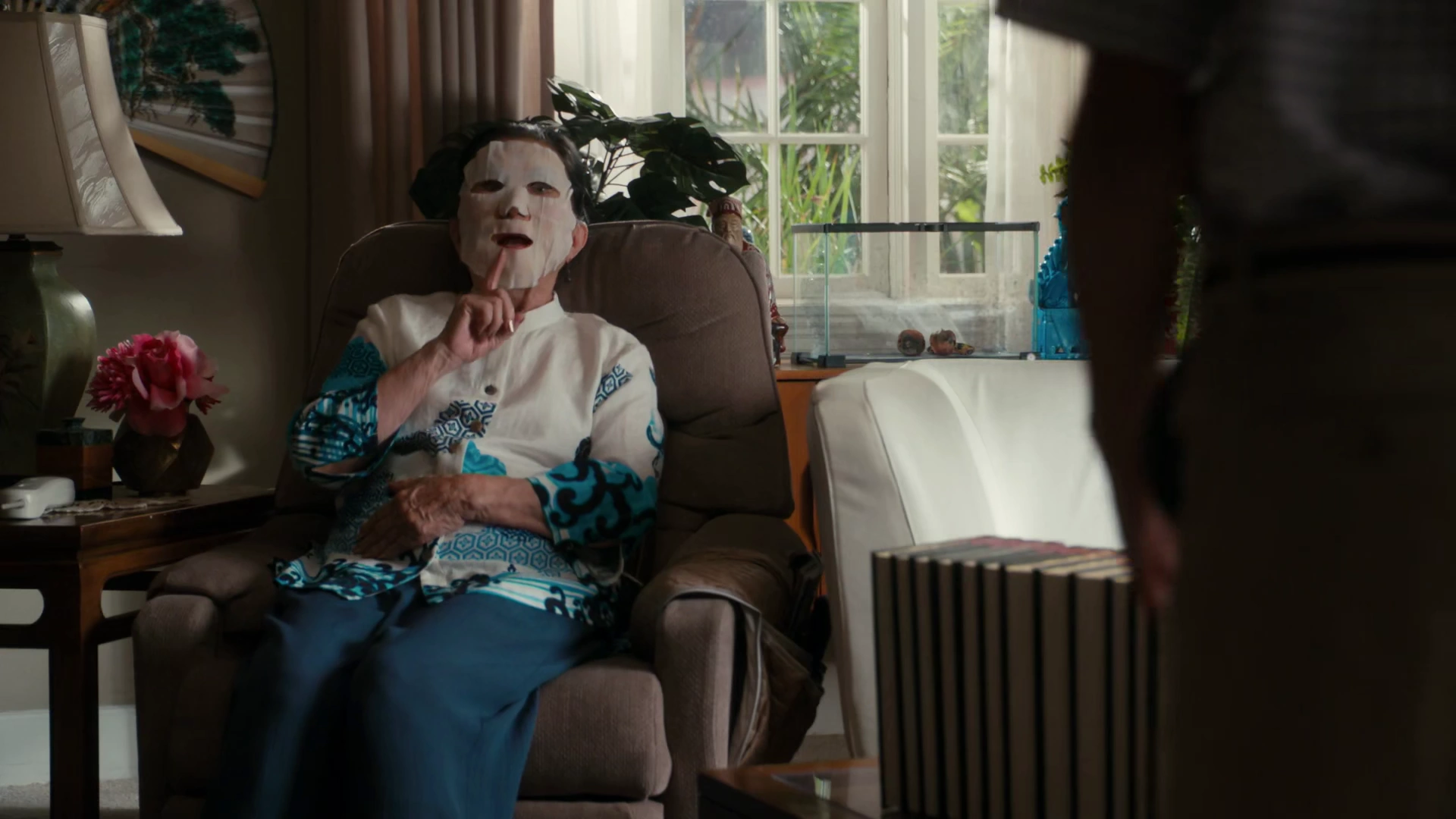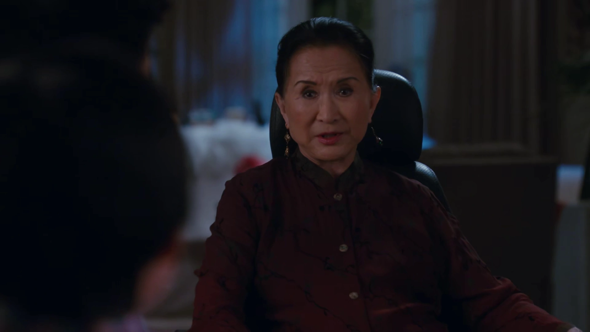 Eddie and Evan inform Emery of the theft and enlist Emery's help in returning the stolen nutcracker to the mall. Honey enters with navy blue wrapping paper to wrap the nutcracker; Eddie plans to come clean, but Jenny wheels up to Honey and presents her with the nutcracker she had obtained. Eddie asks Jenny why she bailed them out, and she replies that she overheard them and decided to help them for the family, although she adds in Mandarin that she plans to hold this over them for a long time. A month later, on Christmas morning, Eddie, Emery, and Evan unwrap their Christmas presents to find gift cards, only for Jenny to demand that Eddie and Evan give their gift cards as restitution, informing her grandsons that family always pays back their debt.[24]