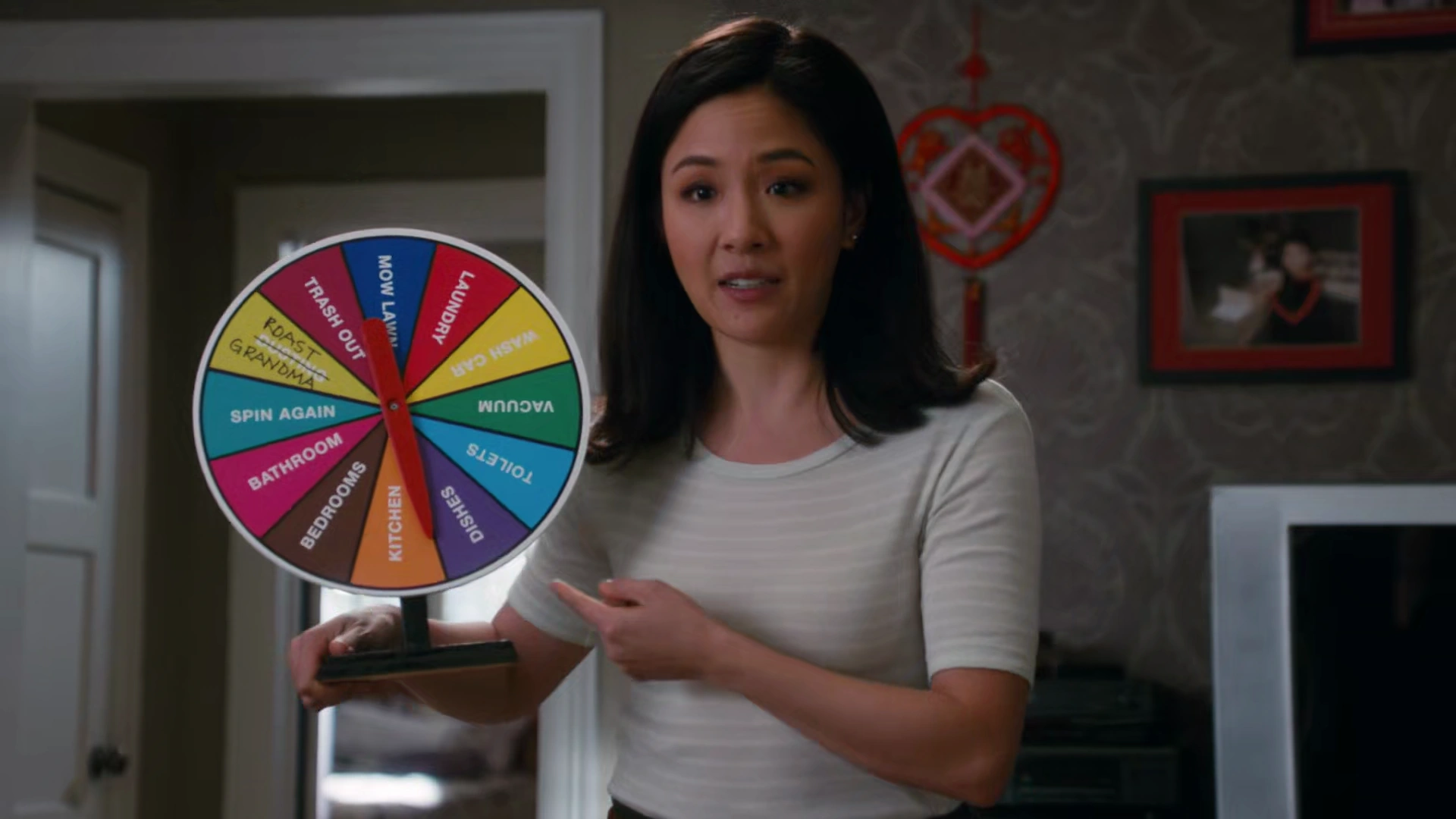The next day, Honey enters her home and curses as she steps on several building blocks. Jessica then appears, revealing that she bought Maria various LEGO-like blocks to play with so that Honey could devote time tending to Liza; additionally, Jessica has invited Mervin and his wife Candy to help Honey take care of her daughters, much to Honey's annoyance. As he enters, Mervin declares that he loves what they've done with the house while flailing his arms around, causing one of Honey's vases to fall and shatter on the ground. Candy then tells Honey that her home is not child-proof, leaving Honey to mirthlessly "thank" her. Honey then retaliates by having Marvin play the bugle in the Huangs' house to wake them up every morning and gives Jenny a megaphone, which Jenny uses to annoy Jessica. Retreating to her room, Jessica finds Emery rehearsing to be Danny Zuko from Grease, which only furthers her disdain.