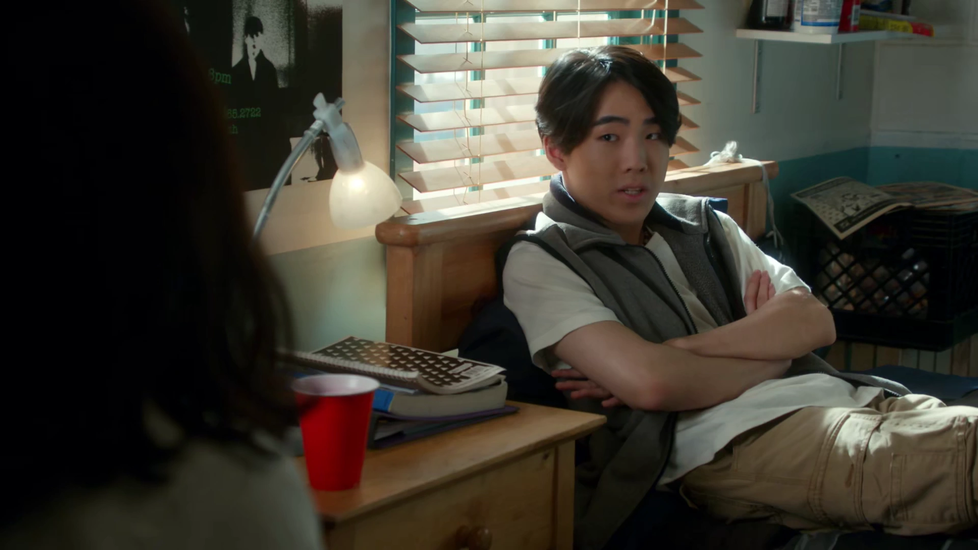 Just then, Justin's roommate Kip walks in, and Justin informs him that the Huangs would be staying with them, although Kip replies that he doesn't care as he flunked his midterms despite having taking AP classes, attending prep school and even being high school valedictorian. Justin later spends the day watching Mr. Show on television with his friends, inviting Eddie along. Eddie then asks him if they do anything for fun, and Justin responds that they take naps, prompting Eddie to believe that college life is lame and boring.[2]