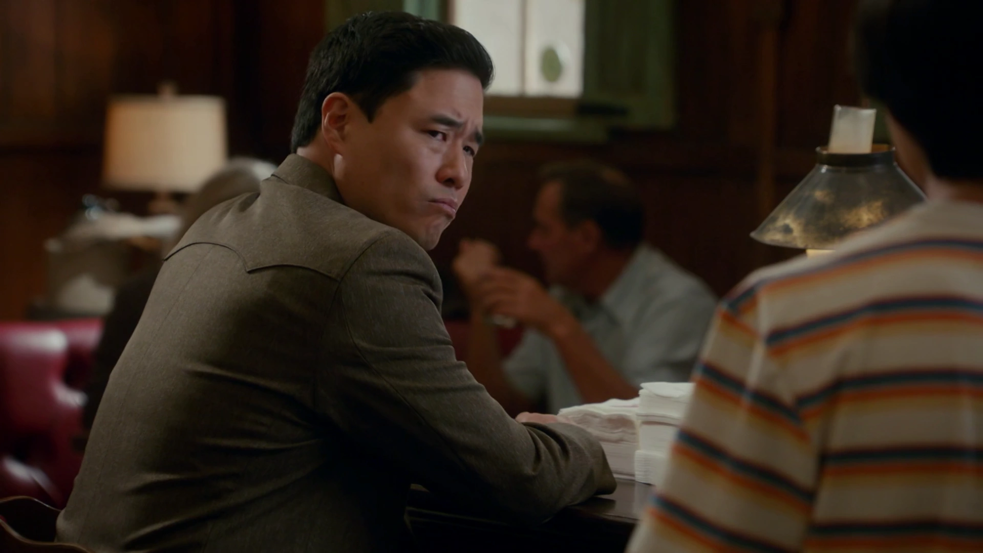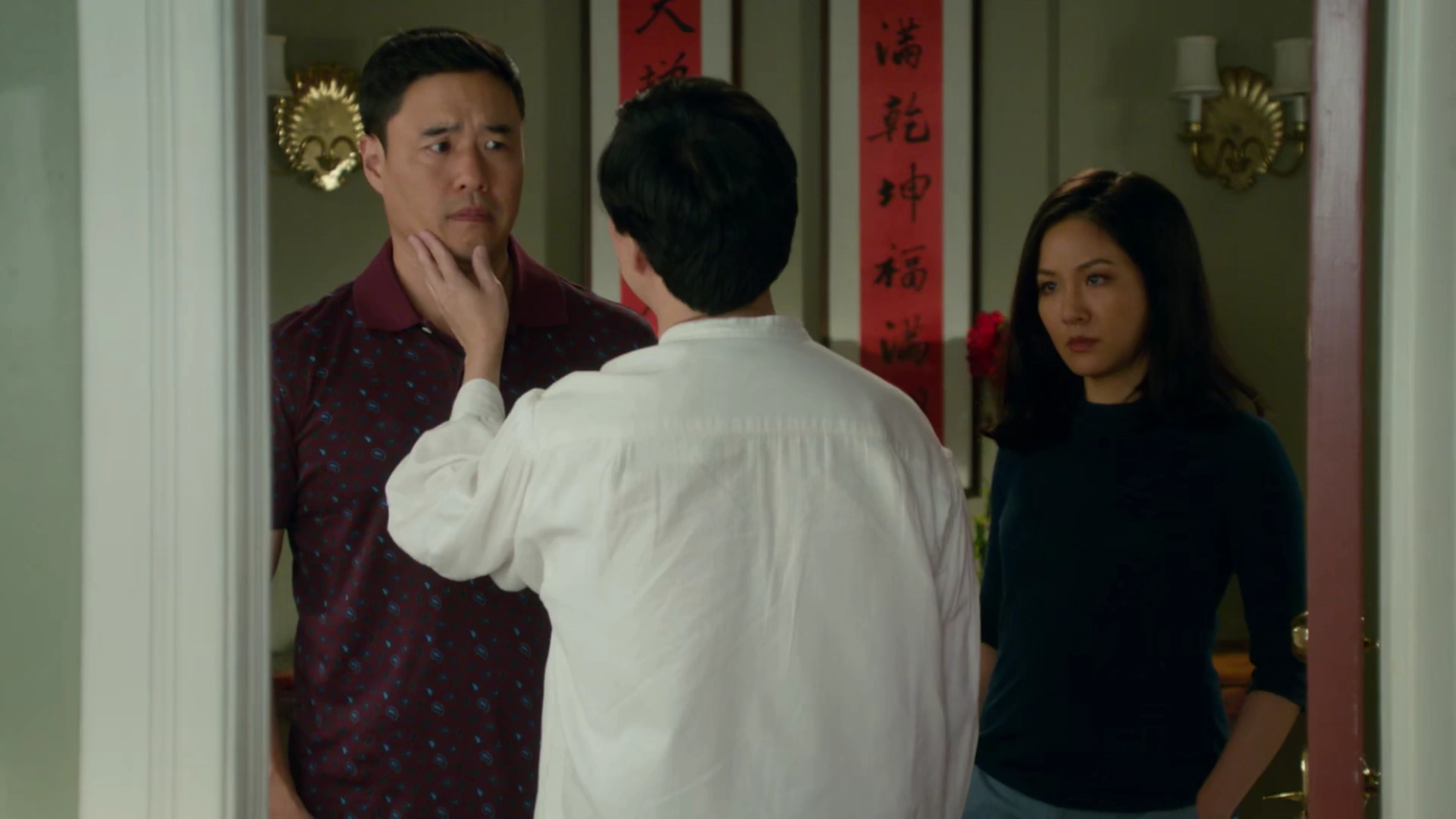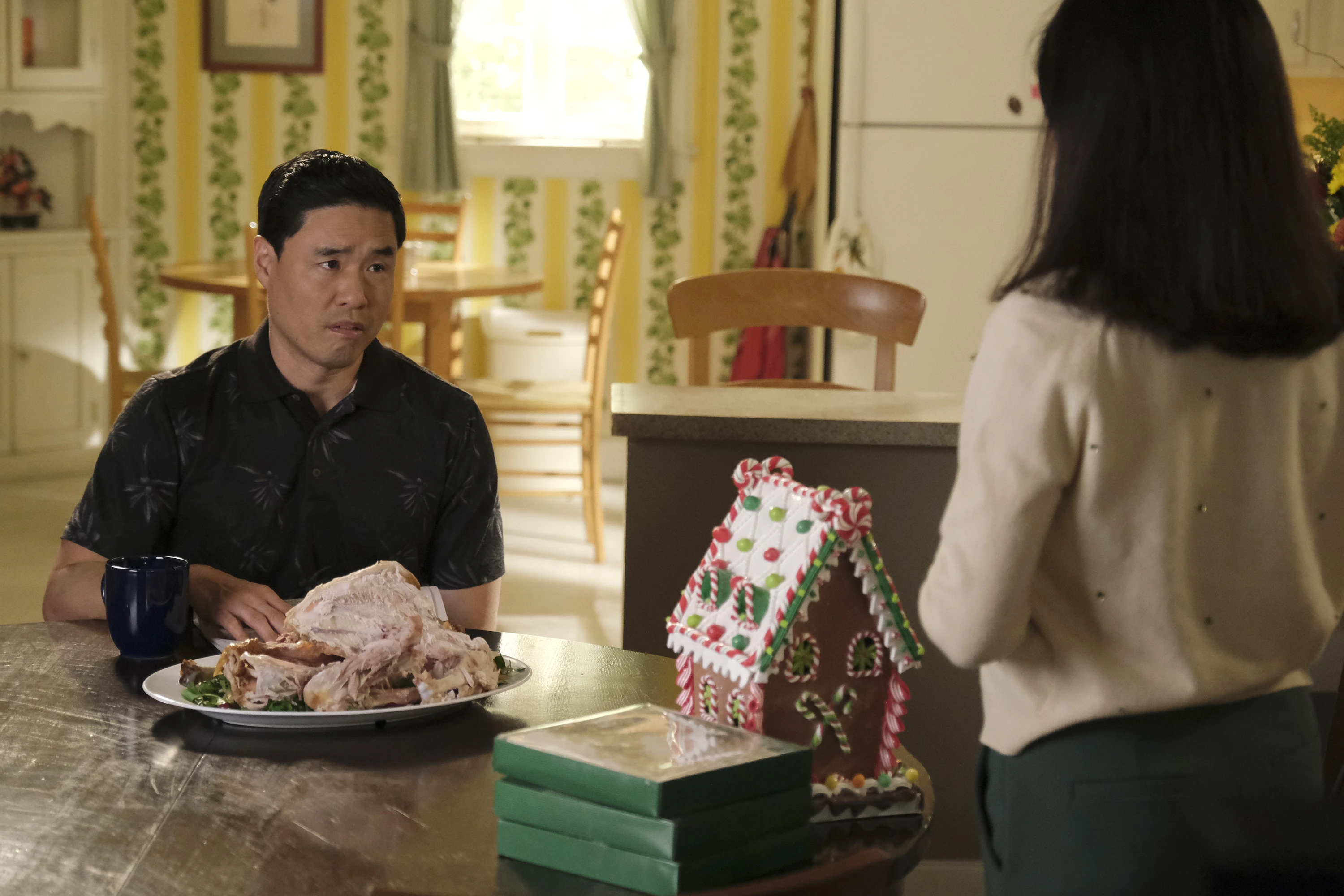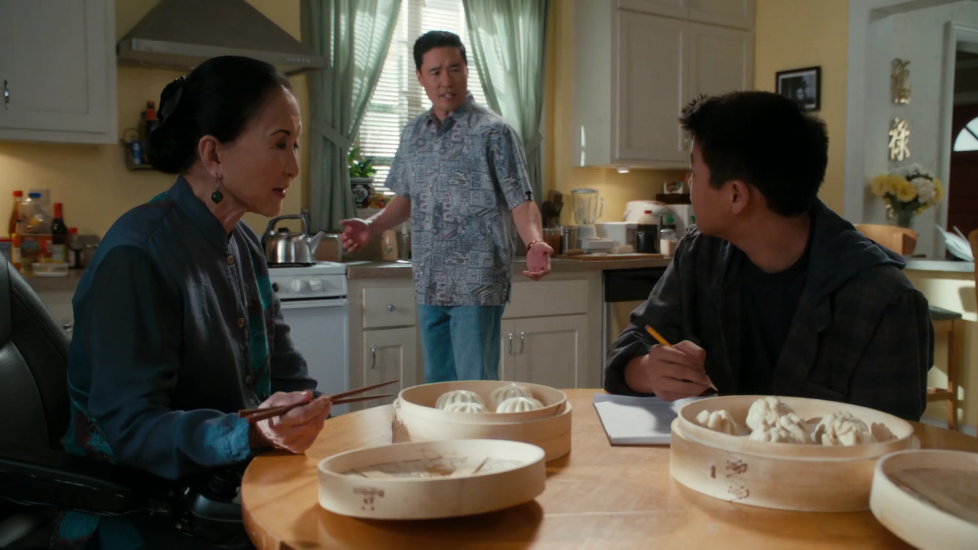 Louis witnessed his three sons having a fight on the couch and attempted to break the fight up, citing that as brothers, they were all each other hand. Just then, Jessica notified him that his brother Gene was on the phone, prompting Louis to immediately reply "Tell that bastard to go to hell!". Louis was then told by Gene that he had big news and that he was coming to Orlando. Louis then spoke with his mother, referring to an incident at a hot springs, and Jenny told her son that he should set an example for his sons. In response, Louis took the whole family to the airport to pick up Gene. Gene revealed that he was getting married and had turned his life around, and took the rest of the Huangs out to a nice restaurant.