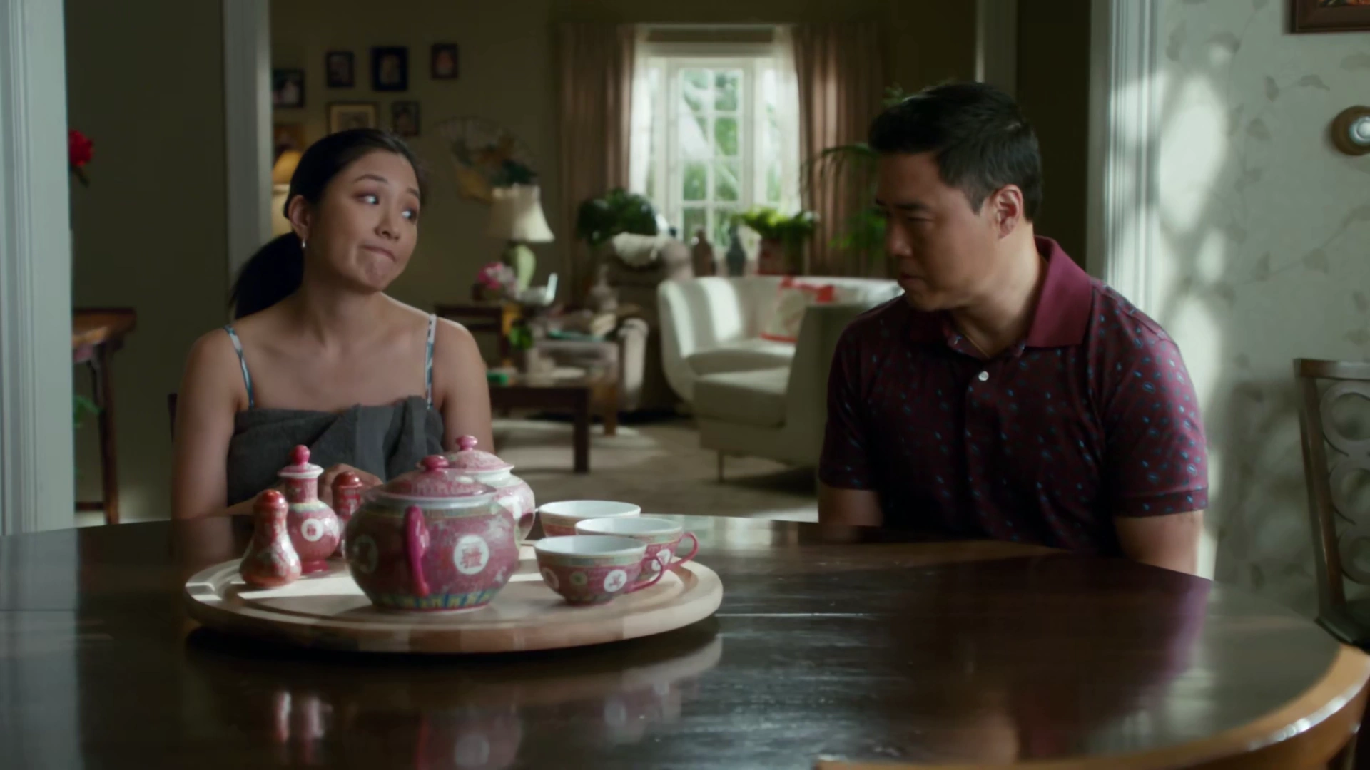 However, Louis has grown to like the club and has forged business deals through them, with the idea to open up another location, dubbed Cattleman's Express. Louis lies to Jessica about cancelling the membership, but she realizes he went to the club due to his aftershave, although Louis discovers that she has stayed home to watch Melrose Place. Jessica laments that she likes the show and she likes making macaroni-and-cheese dinners and that she hates that she likes American culture, although Louis tells her that it is okay to like it and that they don't have to give up American culture to maintain their Chinese identity. After witnessing Eddie defend China at school, Louis tells Jessica that the kids would be fine. Shortly after, they all head to the country club, with Louis finally swapping out the family minivan's Washington, D.C. plates with Florida ones; custom ones that read "SO CHINEEZ".[13]