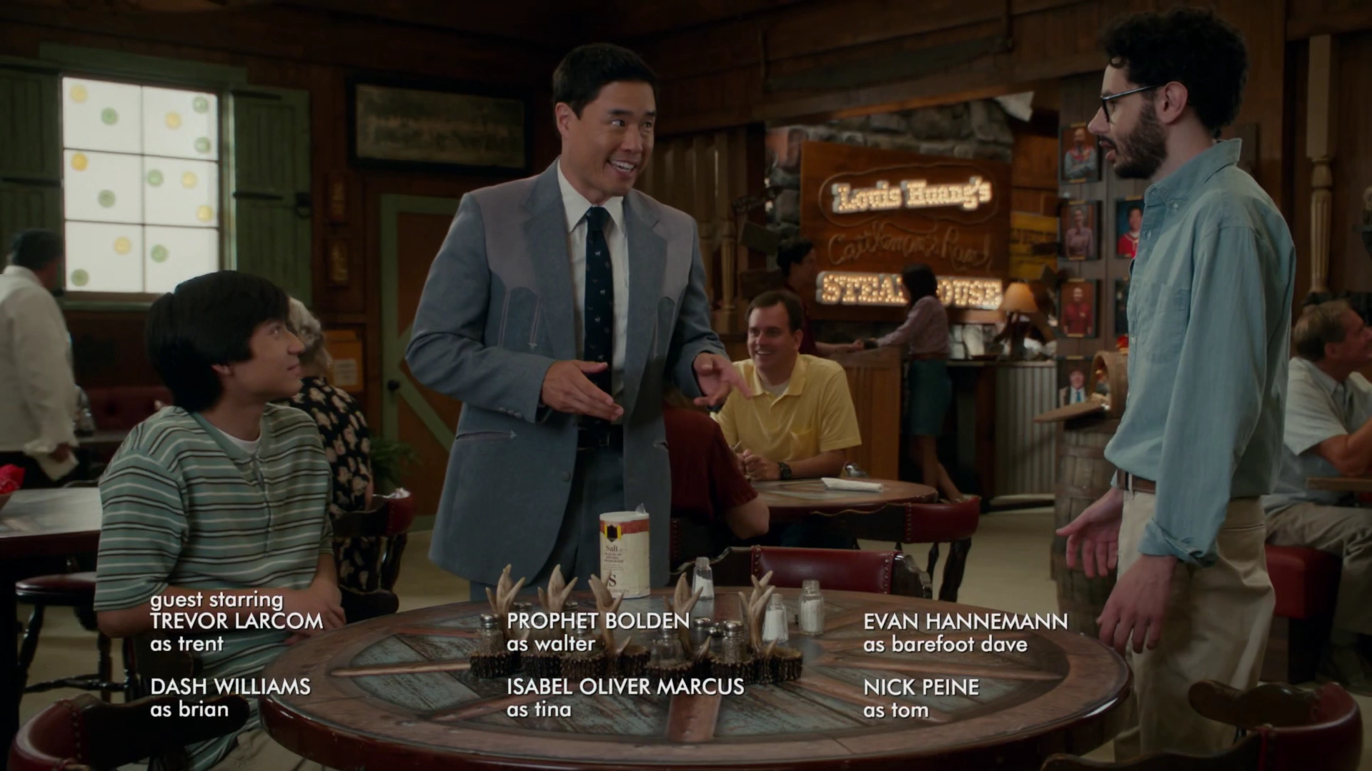Louis Huang is the father of Eddie, Emery and Evan, the husband of Jessica, the eldest son of Jenny, and older brother of Gene. He is the owner of Louis Huang's Cattleman's Ranch Steakhouse. He is portrayed by Randall Park.