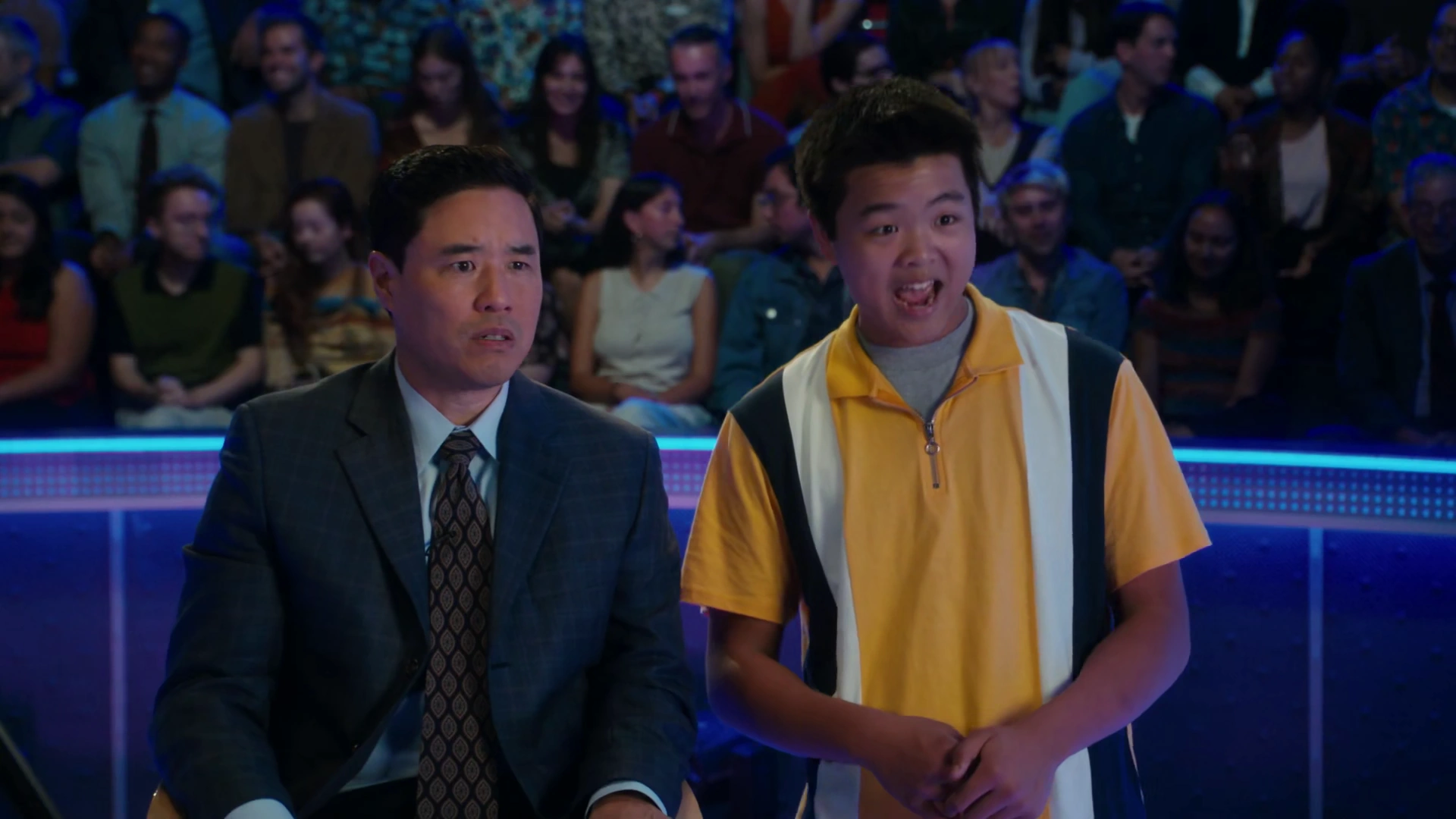 The Huangs and Patels attend the Florida State Spelling Bee, and as Evan spells "guetapens" correctly, Louis wonders out loud if Evan would get a trophy if he won. Mina Patel then informs him that he would just get a ribbon and a certificate that would not fit in a standard frame.[52]