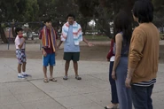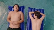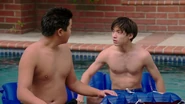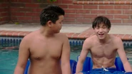 Eddie: How much time till we move to the Gibsons' pool? Emery: According to our data, we have four hours till the owners come home. Evan: Incorrect! Your time is up! Eddie: How did you... What're you talking about? It-It's our friend's pool. Evan: Cut the crap, Edwyn. Emery: Relax, it's a victimless crime. Evan: Victimless? The people's trust in the Census has been eroded. Eddie: I'm sorry, bro, we're not leaving. Evan: [using a megaphone] Eddie Elvis Huang sleeps with a stuffed animal. Emery No-Middle-Name Huang waxes his chest. Emery: Whoa, whoa, what are you doing? Evan: If you don't get out of this pool, I'm visiting the houses of everyone you know and announcing more embarrassing facts. |