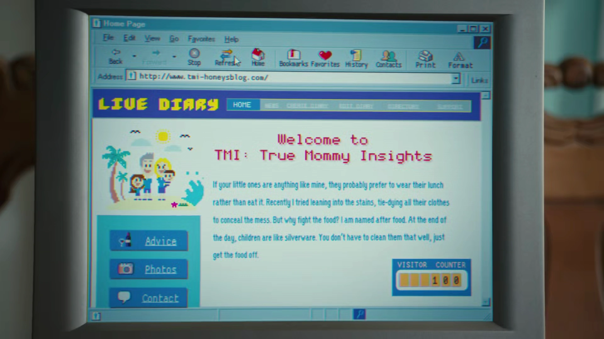 Honey finishes writing and publishing her first post on the site, about how children don't need to be well-cleaned so long as the food on them is removed. After publishing it, they are ecstatic at the view counter that keeps increasing as they refresh the page, only to realize the views are their own. They decide to take a break, with Louis listing off various names for his consulting service, which bores Honey. Eventually, she decides to return to her computer and check the view count, and see that the post has received 100 views. Honey is glad that Louis convinced her to do this and that there are people listening to her maternal problems, and in gratitude goes through Louis' list of company names.